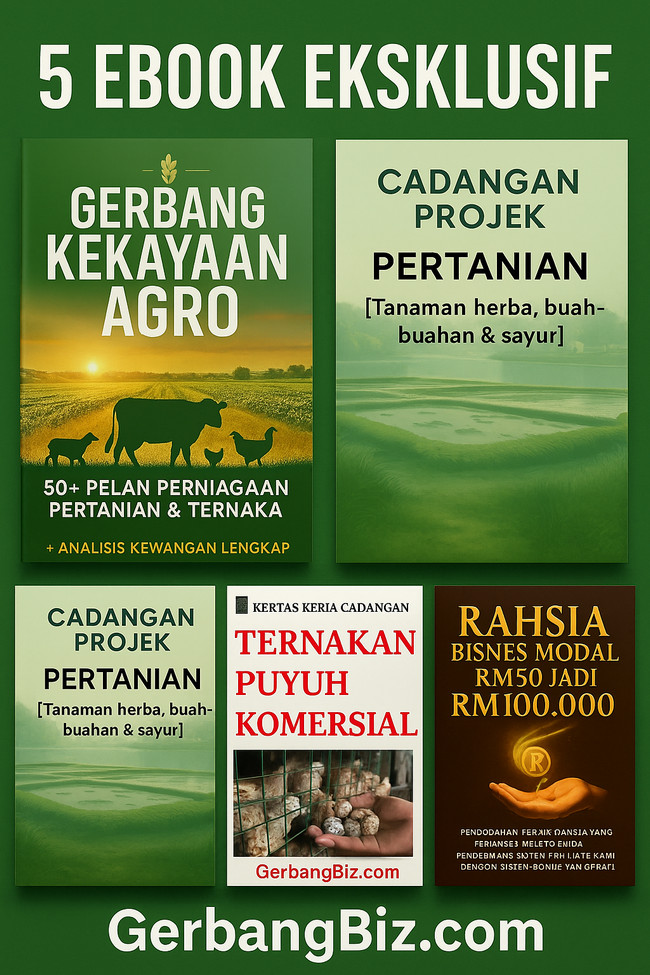 Tahniah kerana anda sedang memegang kunci ilmu yang sangat berharga β sebuah eBook komprehensif yang menghimpunkan 27 projek ternakan terbaik, dari air ke darat, dari kecil ke besar, dari kampung ke komersial!